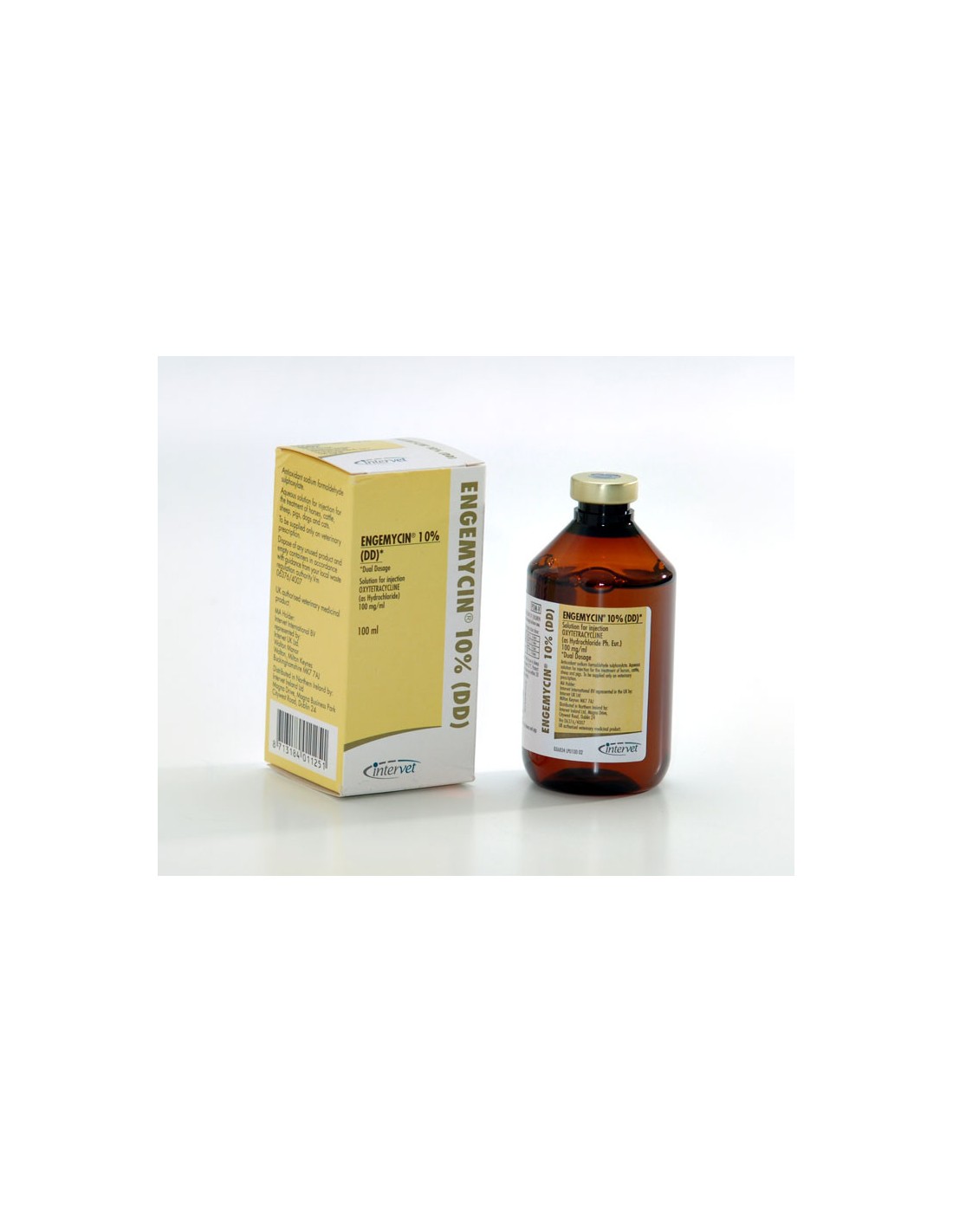 Engemycin 10% este ambalat în flacoane de 100 şi 250 ml din sticla tip II (Ph. Eur) , sigilate cu dop de cauciuc din butil halogenat si capac de aluminiu.