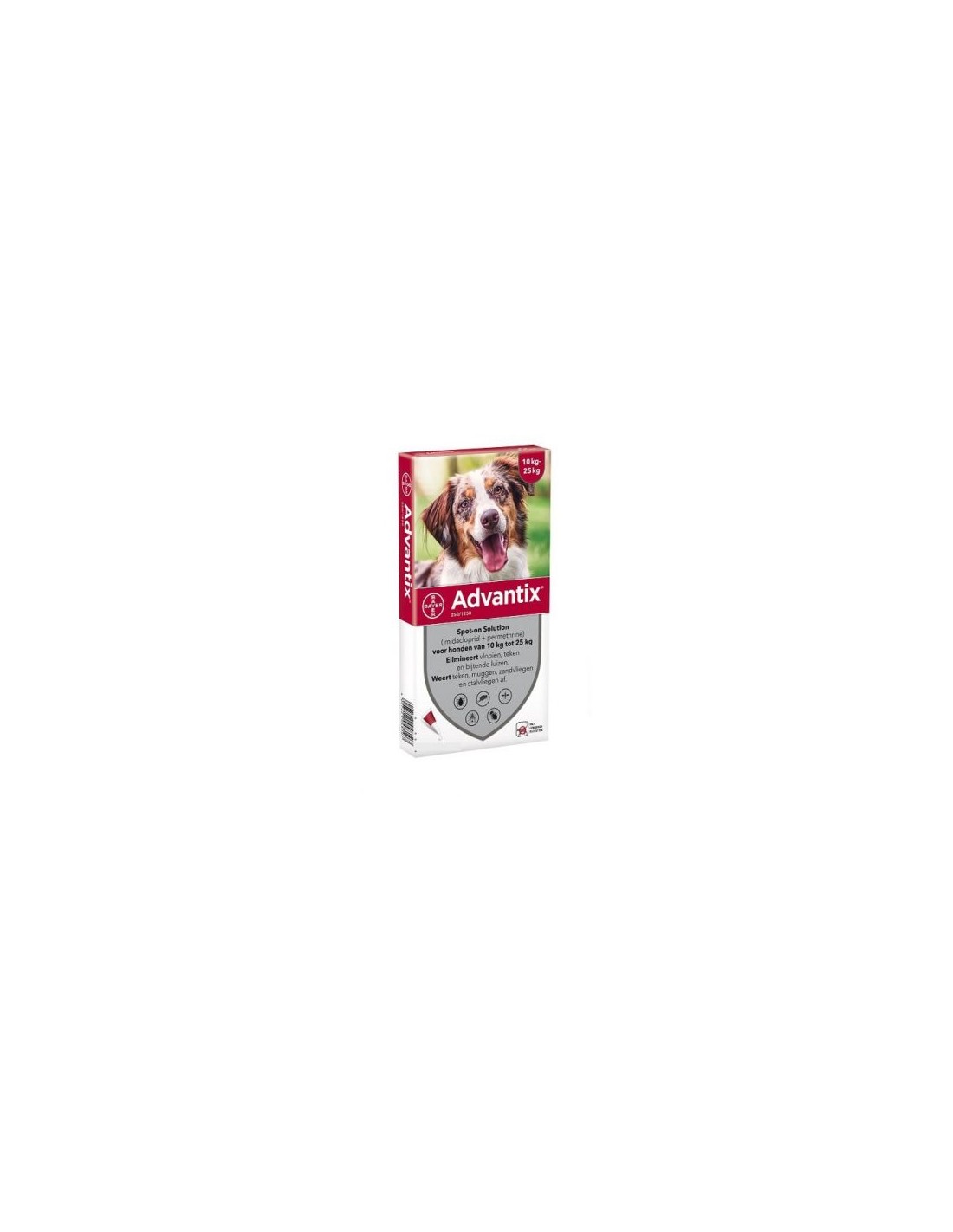 Advantix 250 Caini (10-25 kg) este o solutie spot-on pentru caini de talie medie (avand o greutate intre 10 si 25 kg) pentru tratamentul si prevenirea infestarii cu purici si capuse. O pipeta asigura protectie de pana la 4 saptamani.