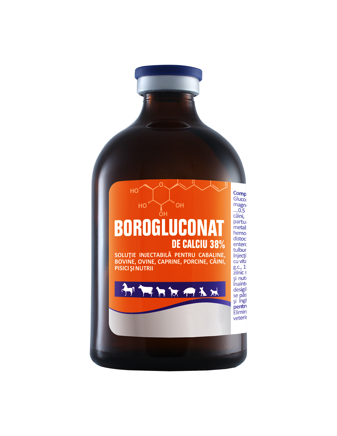 Borogluconatul de calciu patrunde repede in circuitul sanguin ridicand calcemia cu 30-40% peste valorile initiale. Calciul participa la formarea scheletului, controleaza permeabilitatea celulara si coagularea sangelui. Carenta de calciu influenteaza functia de reproductie la cabaline, bovine, ovine, caprine, suine, cậini, pisici si nutrii, provocand adeseori infecunditate, tulburari grave ale spermatogenezei. Magneziul diminueaza sensibilitatea nervoasa si actioneaza bradicardic.