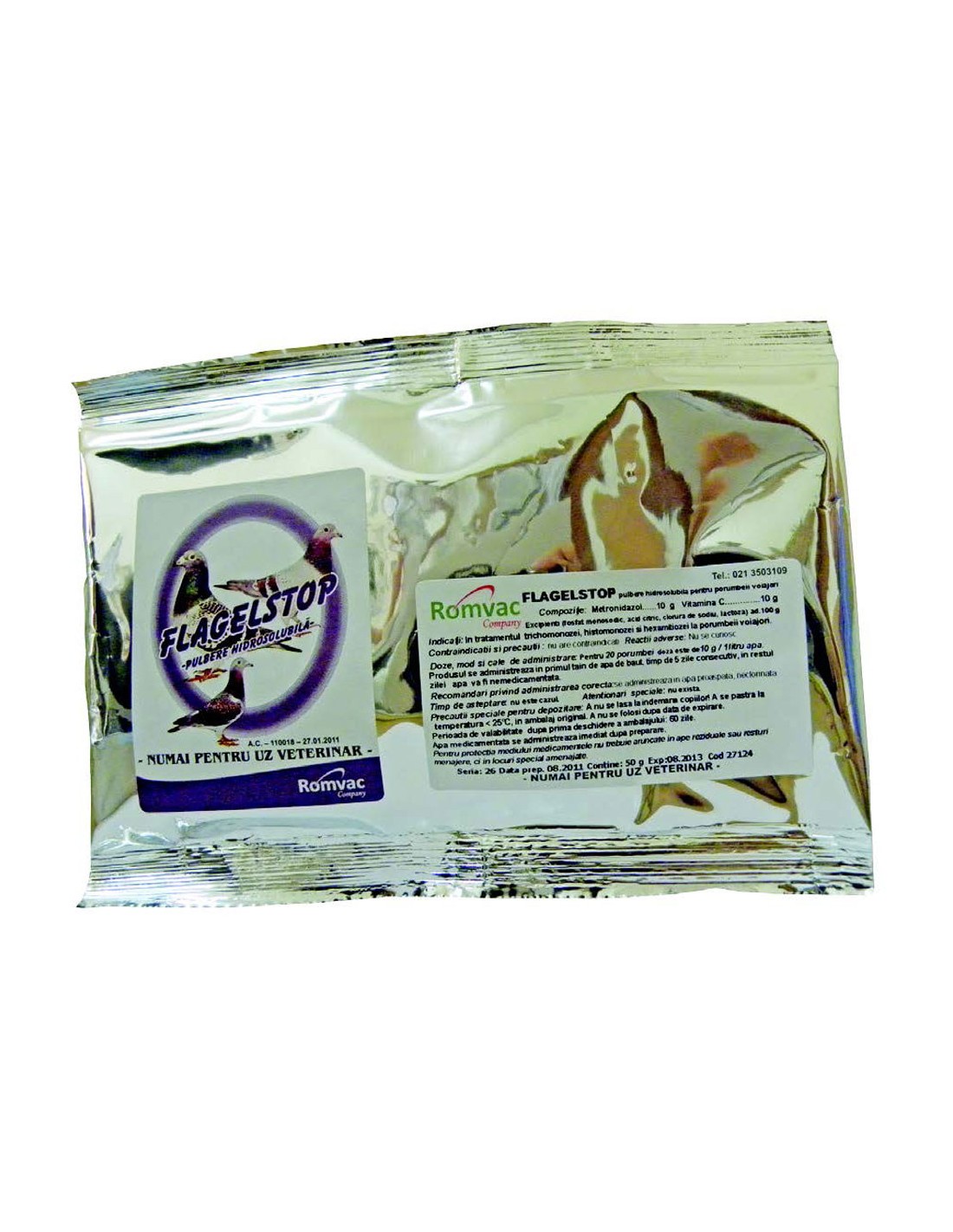 Metronidazolul este un derivat al imidazolului cu actiune specifica fata de protozoarele flagelate din genurile Trichomonas spp., Histomonas spp. si Hexamita columbae la porumbel. Vitamina C mareste rezistenta organismului la infectii, ducand la cresterea eficacitatii tratamentului.