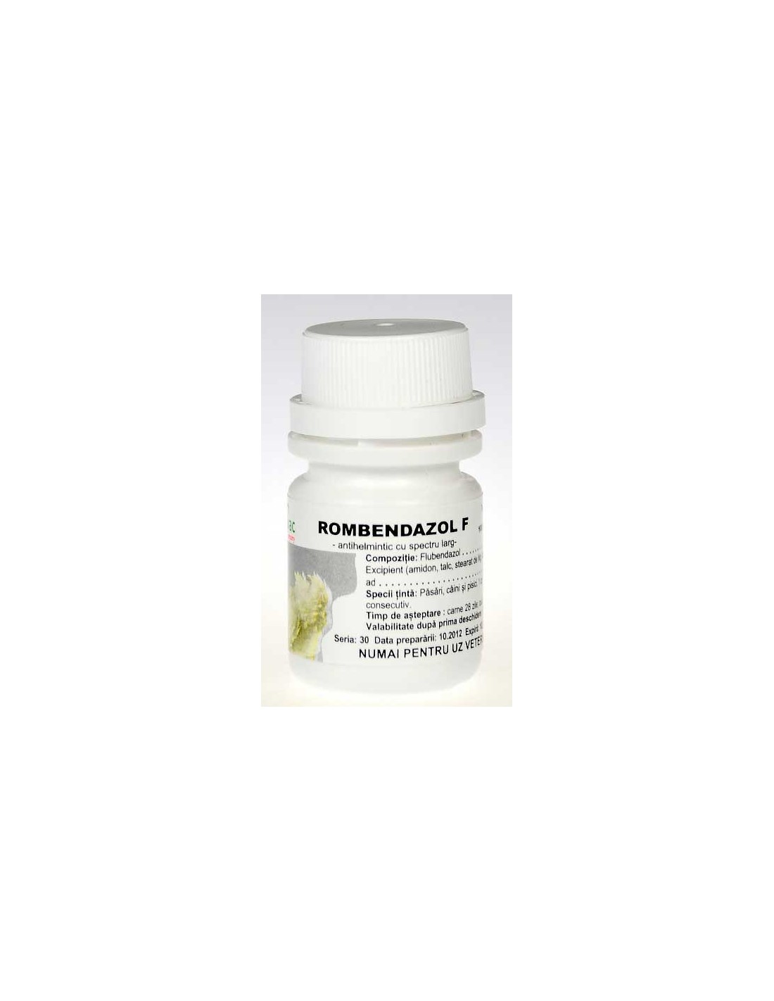 Rombendazolul F comprimate este un produs indicat in dehelmintizarea pasarilor actionand asupra nematodelor (Ascaridia galli, A. dissimilis, A. columbae, Heterakis gallinae, Capillaria contorta, Capillaria caudinflata, Syngamus trachea), trematodelor (Echinostoma revolutum, Prosthogonimus ovatus etc.) si cestodelor (Davainea proglotina, Railletina tetragona, Railletina echinobothrida, Choanotaenia infundibulum, Amoebotaenia sphenoides, Drepanidotaenia lanceolata etc ).